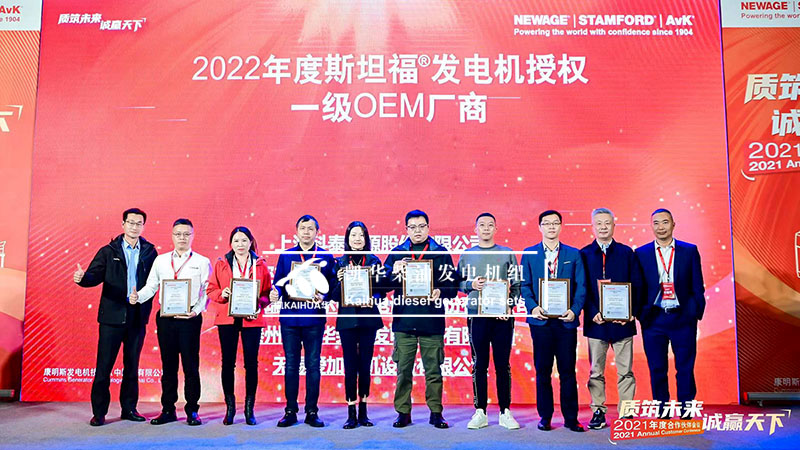 旺财28柴油发电机组有限公司在贵阳安纳塔拉度假酒店参加康明斯发电机技术2021年度合作伙伴会议,我司作为STAMFORD®发电机一级OEM厂商荣获康明斯发电机最佳业务拓展奖项。在这一年里,旺财28和康明斯克服苦难,协同一心,取得了新的辉煌。希望在数字化转型的新动能下,共赢智慧未来! Cummins Generator Technologies 成立于 1904年,以著名的 NEWAGE®、STAMFORD® 制造交流发电机和 AvK® 品牌树立行业标准,从 7.5 到 11kVA,适用于所有发电机组配置。